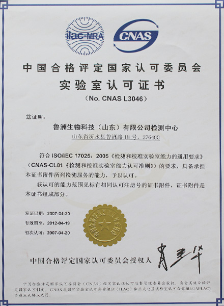 國家實驗室認可證書